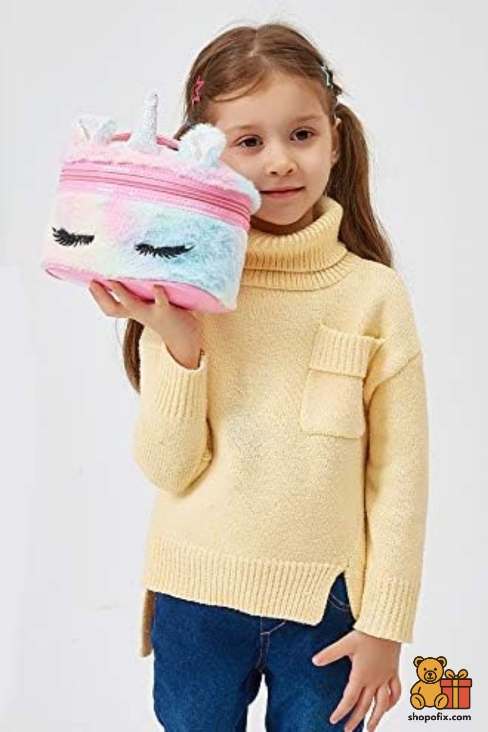 A fluffy unicorn makeup bag is a fun and creative gift for any little girl who loves to play dress-up and get ready for a performance. This isn’t a bag filled with real makeup, but rather a cute and portable storage case for all their pretend play essentials. Made from soft faux fur, it’s designed to be a safe, non-toxic, and skin-friendly accessory for creative play. Its lightweight design and exterior handle make it easy for them to carry their favorite lip glosses and accessories wherever they go.