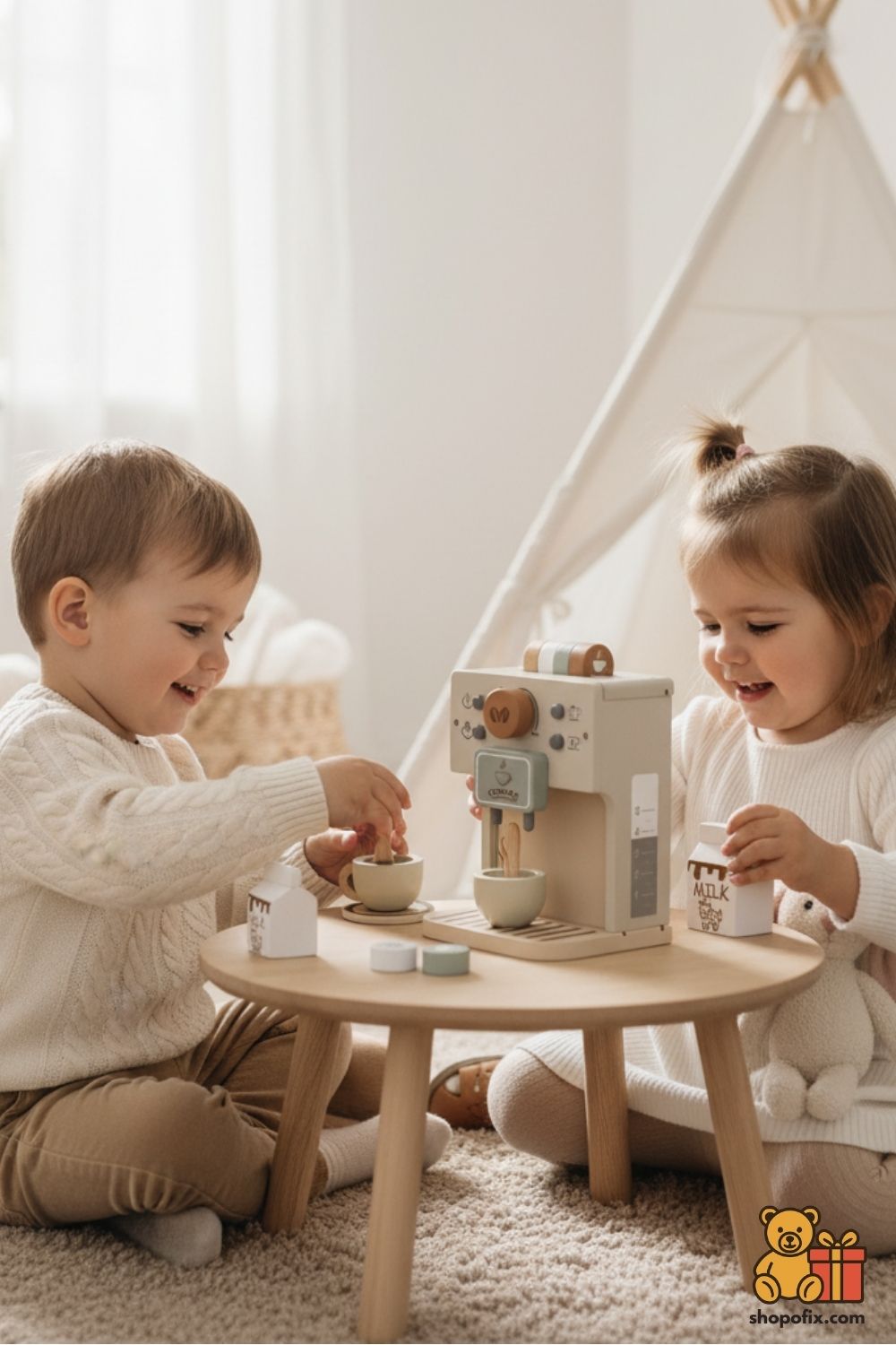 This isn’t just a toy; it’s an educational tool that helps kids develop crucial social and motor skills. As they play barista, they’ll learn about sharing and taking turns, while the action of pouring and stirring helps with hand-eye coordination. It’s a great choice for screen-free fun and a truly delightful decorative piece that will add a touch of charm and elegance to your child’s playroom or even your kitchen counter.