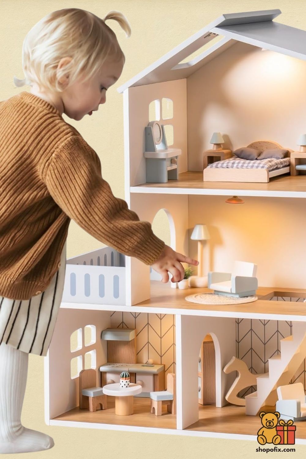 This wooden dollhouse is a true showstopper that will ignite your child’s imagination while keeping your home looking chic. With its Nordic-inspired design and a whopping 29 pieces of sleek, modern furniture, it’s a stylish hub for limitless creative play. Forget the bright pink plastic houses—this one is elegant and sophisticated, making it a beautiful piece of decor as much as a toy. The enchanting, customizable lights on each floor add a magical touch, letting your child set the perfect mood for their stories.