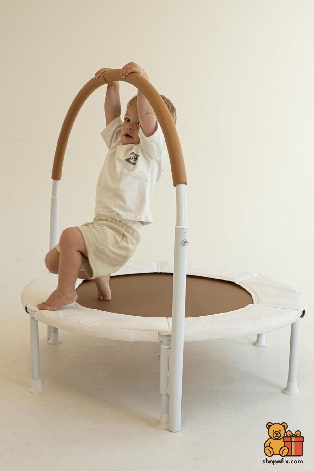A mini trampoline is a lifesaver for burning off that endless toddler energy, and this one is designed to look as good as it works. Forget those bulky, brightly colored trampolines; this one boasts an aesthetic design with a clean, white vegan leather cover and a neutral jumping pad that complements any modern playroom or living space. It’s the perfect size for indoor and outdoor use and can handle up to 200 pounds, making it a safe and durable choice for active little ones.